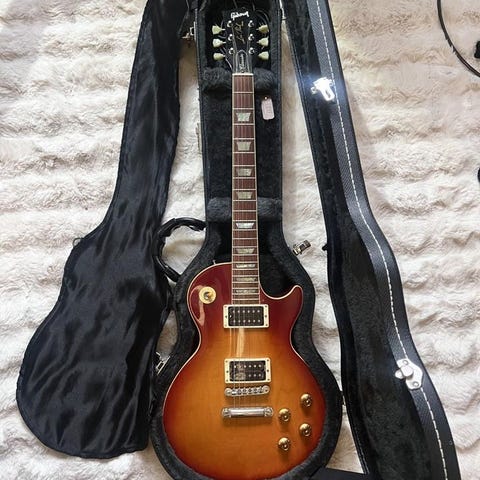 Vit Gibson Les Paul Custom från 1982 i använt men mkt gott skick. Nitrolack som gulnat ngt och ger en fin patina. Låter och spelar som en dröm!