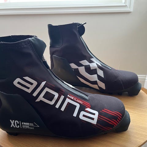 Längdåkningspjäxor Alpina, använda en eller två gånger.