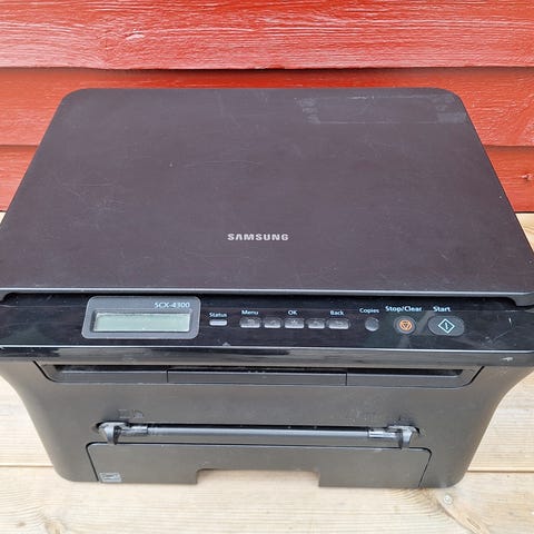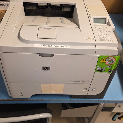 Använd på kontor ett par år. Bortskänkes på grund av inköp av annan skrivare.