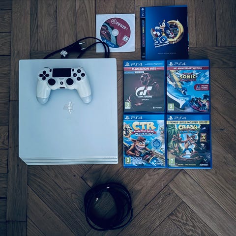 Säljer mitt Playstation 4 PRO med anledning av uppgradering av konsol. Konsolen är i mycket bra skick. Uppnår en upplösning på 4K med stöd av HDR och kan spela vissa spel på upp till 60 FPS. I köpet ingår även 6 stycken ps4 spel.