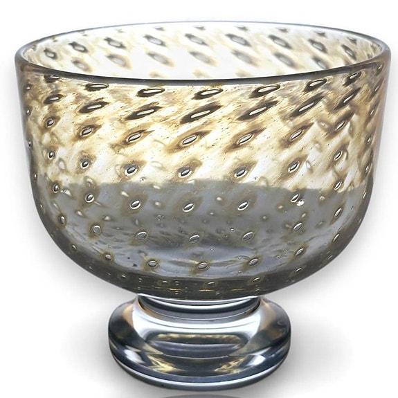 Studioglasskål – Svenskt bubbelglas, amber/klart, signerad