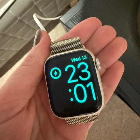 Säljer min apple watch Series 7 ( 45mm) - guld rostfritt stål med milanese loop - armband