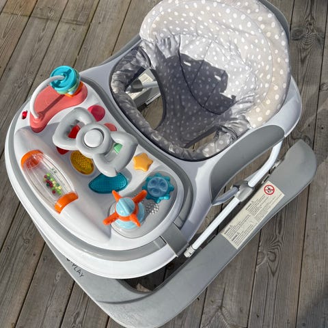 Otroligt populär för vår dotter innan hon själv kunde gå och stå, höll sig road länge i denna. Sägs stimulera motorisk utveckling. Verkar ha slutat säljas nya.