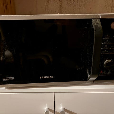 Utrustad med standardfunktioner. Passar för hushållsbruk. Finns roterande tallrik för jämn uppvärmning. 3 - 4 är Fint skick. Ej mycket använd.