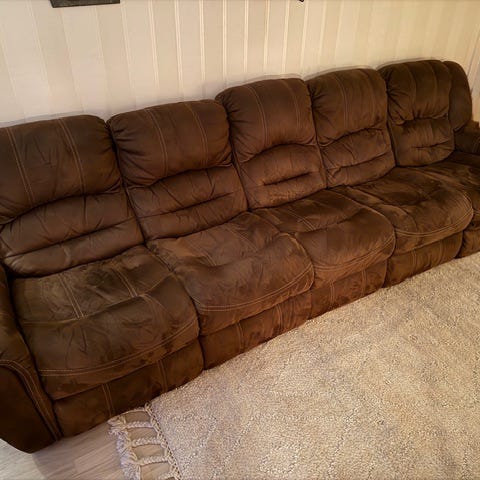Säljer billigt grå grönlid två sits soffa med schäslong och förvaring under.
