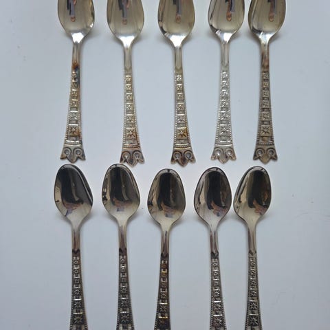 12 st teskedar från Nilsjohan – modell med guldfärgad rombdekor.