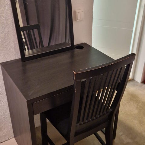 Sminkbord 5 lädor med rektangulär spegel och pall vit