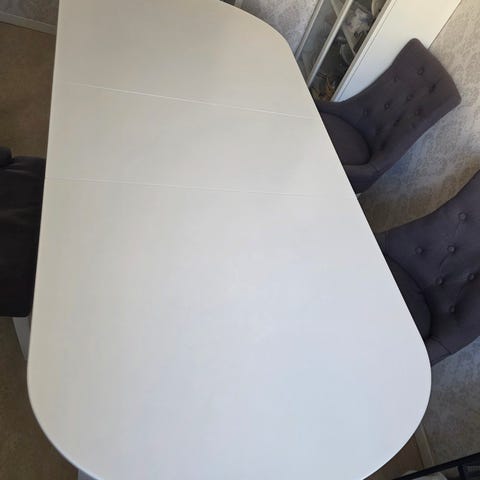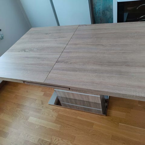 Bordet går att förlänga, vilket gör det väldigt flexibelt för olika behov. Jag säljer det eftersom det är för stort för mitt nuvarande utrymme. Hämtas, ej leverans