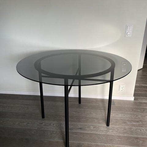 Mio matbord (75 cm) med förlängning skiva (120 cm). Bordsskivan är i trä och benen är vita. Bordet kan förlängas för att skapa mer utrymme vid behov.