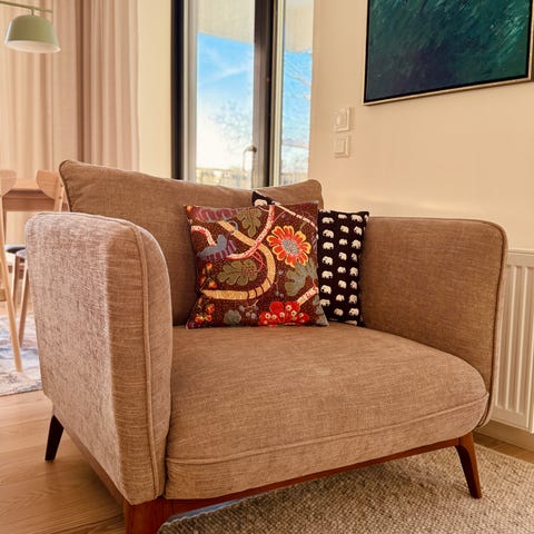 Två Ron Arad fåtöljer med några fläckar som syns. Har aldrig testat att tvätta men svårt att tro att det blir helt bra. Sköna att sitta i och ger färg till rummet. Säljes pga flytt.