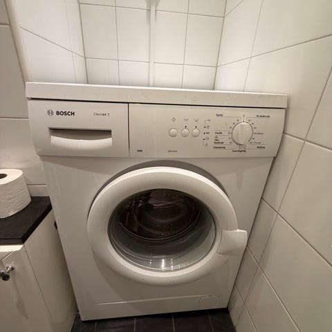 Maskinen fungerar som den ska och tvättar rent men centrifugeringen låter högt och därav säljes den billigt.