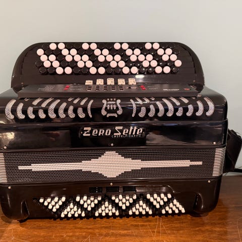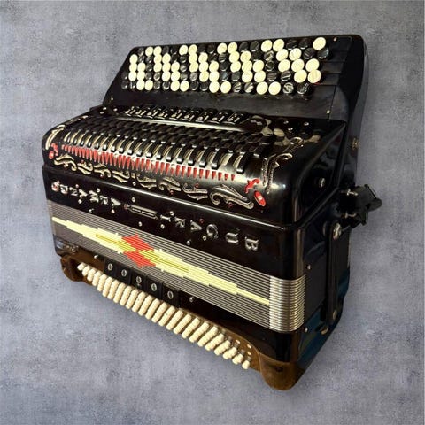 Trekörigt (16+8+4) Zero Sette B18 i fint skick. Handnitade stämmor med ett kraftfullt ljud. 7+3 register. Servat och stämjusterat. Hård väska samt nya remmar ingår. Fri frakt inom Sverige. Vikt: 10 kg.