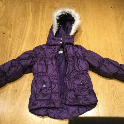 Fin vinterjacka med dragkedja o knappar med avtagbar huva. Muddar i fleece o kardborre i ärmen