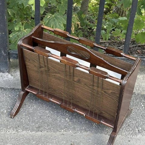 Vackert notställ i betsat trä. Det har en fin retrokänsla. Det kan även användas som tidningsställ eller bokhylla.