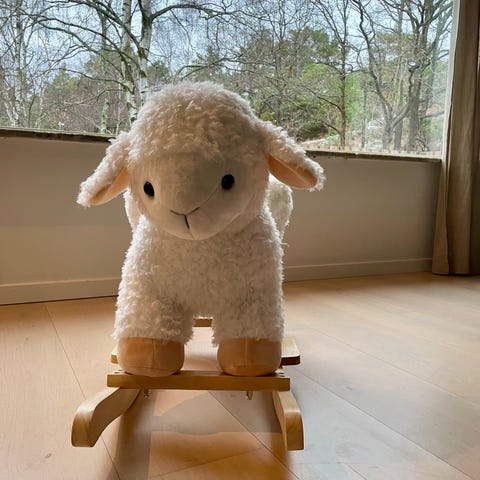 Teddykompaniet gungfår- en barnleksak i form av ett får med gungfunktion. Tillverkad i mjuka material med träbas för stabilitet. Lämplig för barnlek och utveckling av balans och motorik. ’Pälsen’ är tvättbar. En liten, knappt synlig, repa på huvudet. I övrigt mycket fint skick! Djur- och rökfritt hem. Perfekt julklapp!