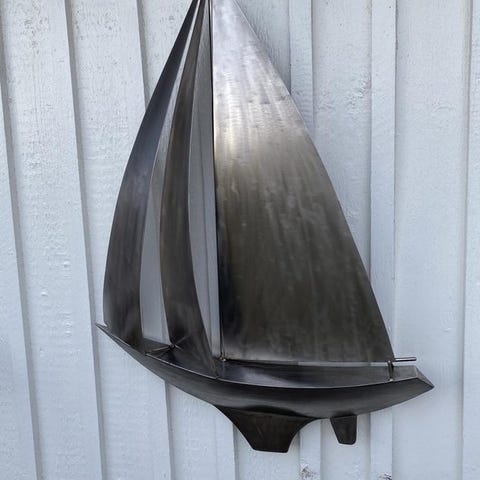 Handgjord träskulptur båt med figurer svart