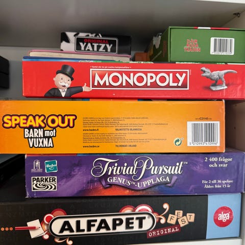 Spelet innehåller spelpjäser i olika färger och tärningar.