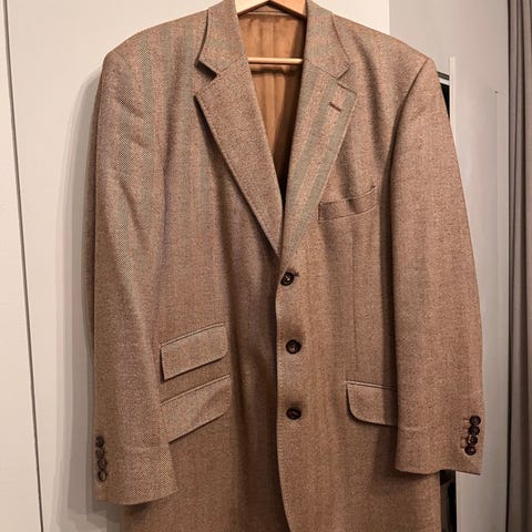Kavajen är i nästintill nyskick, utan fläckar, skavanker eller defekter. Mycket välvårdad och förvarad i påse.