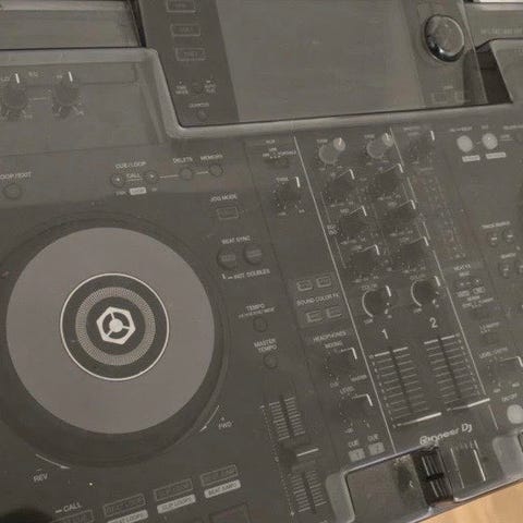 Numark DJ-kontroller. Enheten har två joghjul, mixersektion med reglar och knappar samt bakgrundsbelysta kontroller. Ansluts till dator och används tillsammans med DJ-programvara för mixning och uppspelning av musik. Lämplig som del av ett hemmabaserat DJ- eller ljudsystem som övrig ljudkomponent + hörlurar. Använd vid ett fåtal gånger. Inköpt i december 2025