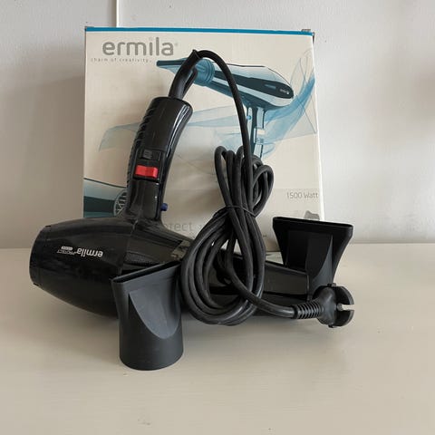Ermila Neo hårtork inklusive munstycken och nätsladd. Produkten är avsedd för hårtorkning och styling.