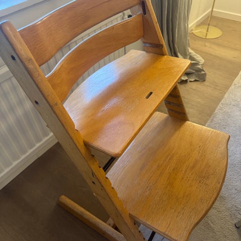 Stokke Barnstolar barnstol tillverkad i trä. Justerbar sitt- och fotplatta för anpassning efter barnets storlek. Designad för att användas som barnmöbel med fokus på funktion och hållbarhet.