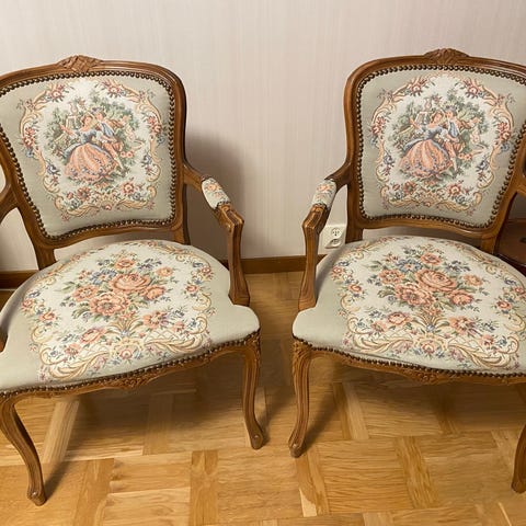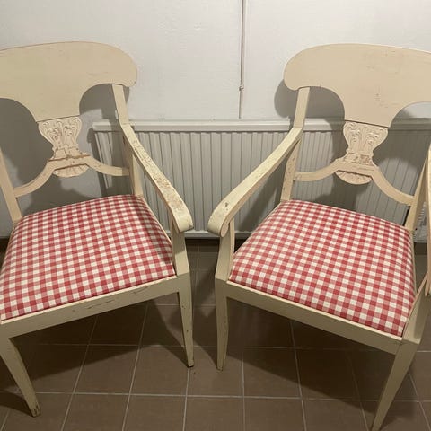 Antika Trästolar / Karmstol med Brun Läderklädsel NK Nordiska kompaniet