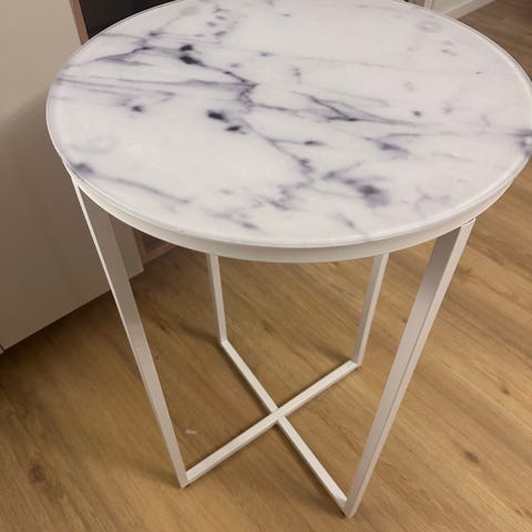 Ett perfekt liter bord att ha vid soffan för att ställa en talrik eller glas som man kan ha framför sig som en bricka eller till sidan.