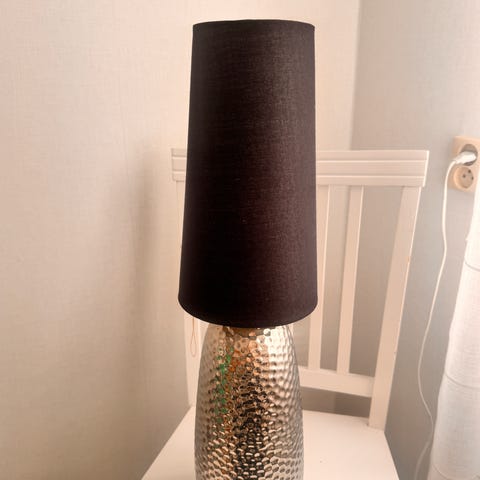 Oscar bordslampa från Markslöjd. Lampfot i guldfärgad keramik. Skärm i svart textil.