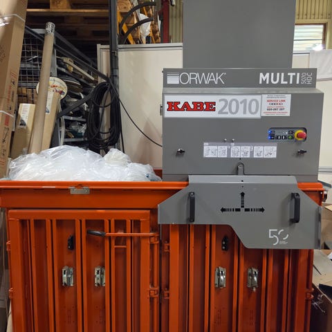 Mobil komprimator för wellpapp, mjukplast och torrt brännbart avfall.