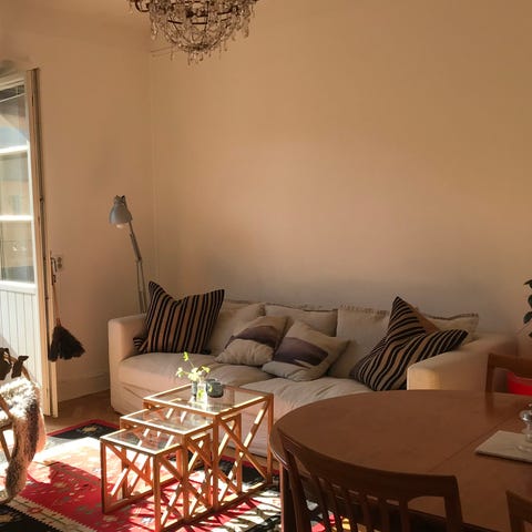 Vacker och mycket skön soffa i linnetyg
