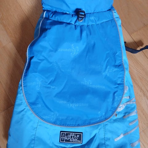 Blått vintertäcke, Hurtta expedition parka i strl 35. Nyskick, använt under en säsong. Säljes då det blivit något för litet för min hund.