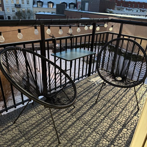 Hängande rottingstol med grå dyna