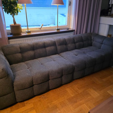 Härlig Soffa med DunSits kuddar med go sits komfort till salu då den tyvärr inte får plats efter flytten Kr 5000,- Tyget kan tas av för tvätt på 40.. Nytvättade.