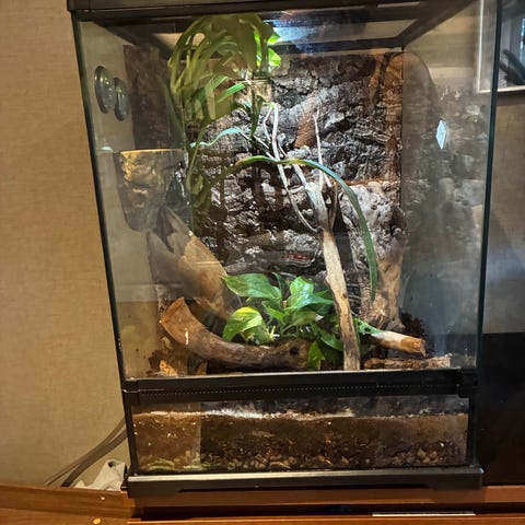 Terrarie för mindre reptiler, lampa, timer och sprutflaska ingår!