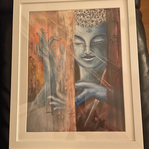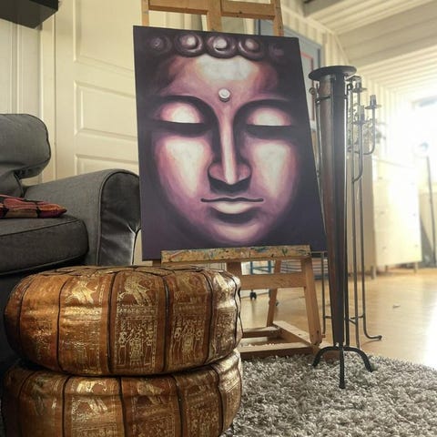 Buddha-målning: En vacker målning av ett Buddha-ansikte. 60x80cm. 600kr