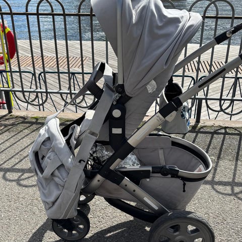Vi säljer nu vår gråa Joolz Geo 2 med två liggdelar och sittdel som har använts av två barn (vår son i drygt 9mån). Den har varit toppen för oss men vi har fått tagit över en annan vagn från familjevänner. Vagnen är hög och ergonomisk, och bra för långa föräldrar. Den är smal nog att komma genom alla dörrar, vagnen har punkteringsfria hjul (vi har köpt till nya framhjul) samt en stor varukorg. Syskonsits samt både ligg- och sittdel ingår, så två barn kan åka om man önskar. Matchande skötväska följer också med.