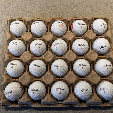 Utvalda golfbollar i gott eller mycket gott använt skick, motsvarande A- till B-klass.