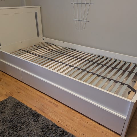 Säljer SONGESAND sängstomme med 2 sänglådor, vit (90x200 cm) tillsammans med: