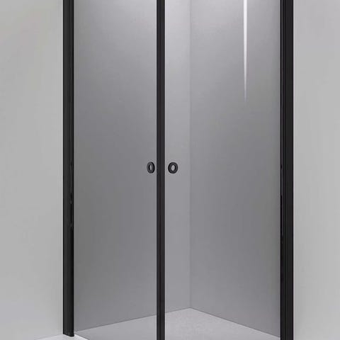 Avskalade och estetiska duschar för finsmakaren. Duschhörna med 5mm säkerhetsglas och 180° svängbara dörrar. Klarar utvändig rördragning upp till 35 mm från vägg.