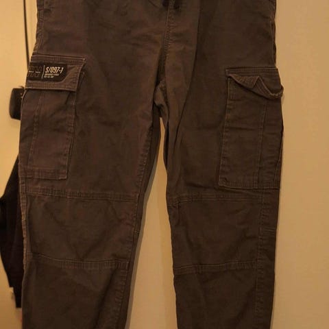 Två fickor fram, två fickor på lårsida. Inga fickor bak.