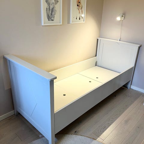 Den låga höjden gör att barnet lätt kan kliva i och ur själv och sängen funkar lika bra som läshörna/soffa med kuddar längs ryggen. Neutral, skandinavisk design som passar in i de flesta barnrum.