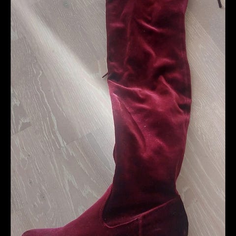 Ett par svarta sammets stövlar med hög klack. Detaljer med spännen i guld färg. Använt ett fåtal gånger, dem är jätte fina och passar till fina tillfällen.