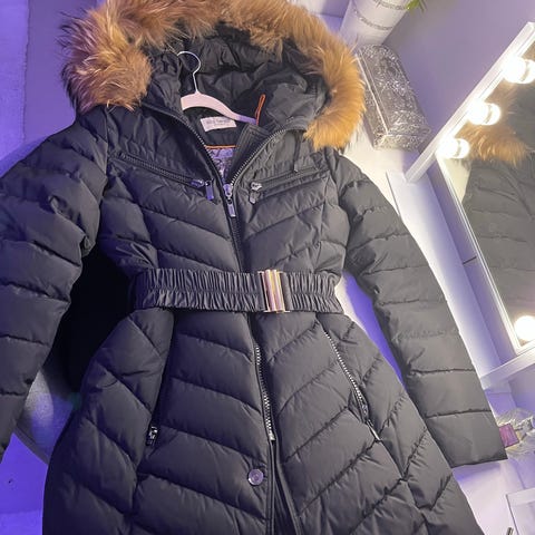 Vinter jacka av märke roco baroco, köpt av hollies butik år 2023 och använt ett fåtal gånger. Svart jättevarm vadderad vinter jacka med avtagbar huva och fuskpäls. Jackan har dragkedja fram och fickor med dragkedja. Leopardmönstrat foder inne i vinterjackan. Inga defekter på jackan.