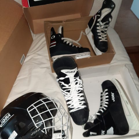 Jofa ishockeyskridskor i storlek 39 med svart färg. Skorna är avsedda för ishockey och har snörning för justerbar passform. Insidan är fodrad för komfort och värme.