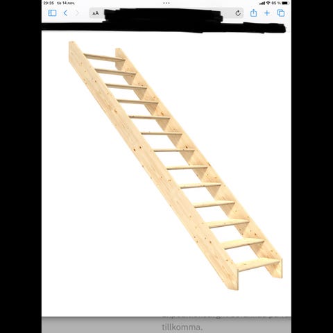 Ny lofttrappa - gran - med massiva sättsteg - höger/ vänster-svängd. Denna trappa har sättsteg mellan planstegen. Omonterad inkl. ett räcke. Max våningshöjd 3000 mm - kan kapas vid behov. Tekniska specifikationer: