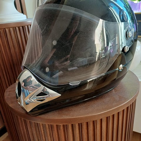Lazer hjälm moped/mc hjälm. Har aldrig använts så i nyskick på insidan men har lite märken på utsidan bara ifrån att den har stått i garage med andra grejer. Skriv vid mer frågor!!