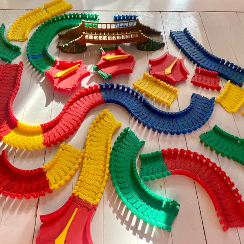 Jättefin bilbana, alla delar finns självklart plus reservdelar till bilarna.