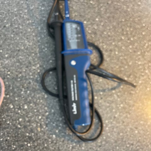 Spänningsprovare för spänningsliknande lik- och växelströmsledningar. Försedd med 8 st lysdioder som visar provad spänning samt ger utslag för (-) eller (+) polaritet.