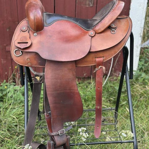 Säljer en kvalitetswesternsadel från Simco, tillverkad i USA. En stabil och välgjord sadel som passar utmärkt för både skogsturer och westernridning.