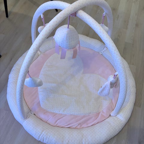 Mjukt och fint babygym från Teddykompaniet. Avtagbara bågar så att den kan även användas som en mjuk lekmatta. Dessvärre finns inte djuren som hängs upp i bågarna kvar.
